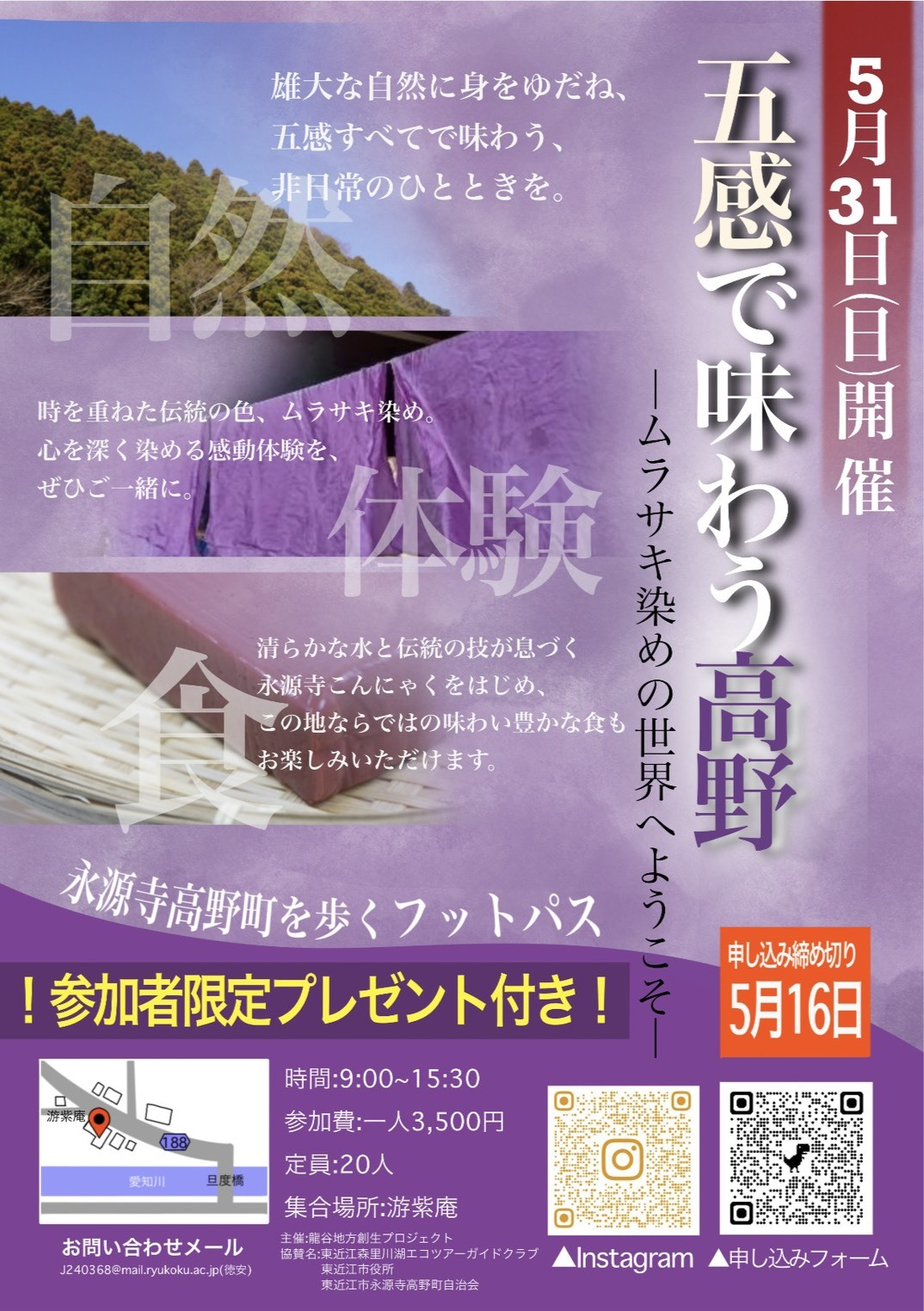 永源寺高野町はムラサキ染め、永源寺こんにゃくで知られる自然豊かな地域。